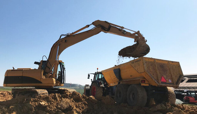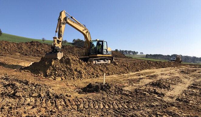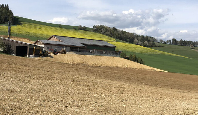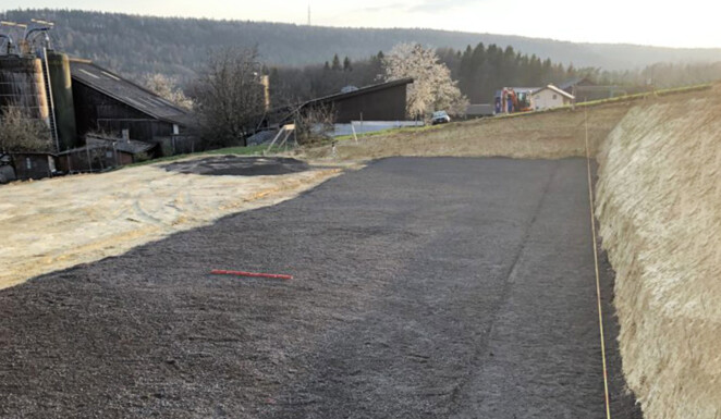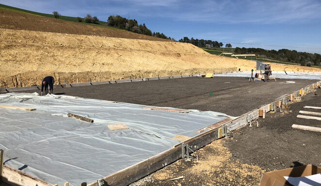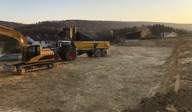 Anfangs April 2020 haben wir in Bargen mit dem Aushub einer Maschinehalle begonnen. Dabei wurde auf einer Fläche von ca. 800m² der Oberboden abgetragen und auf ein Depot geführt. Anschliessend wurden rund 2800m³ Aushubmaterial abgetragen und mit Traktor und Halfpipe Mulde intern verschoben. Anschliessend mit einem Trax wieder eingebaut. Das Einbauen einer Sauberkeitsschicht, sowie das Verlegen von Meteorwasserleitung und Strom gehörte ebenfalls zum Auftrag.